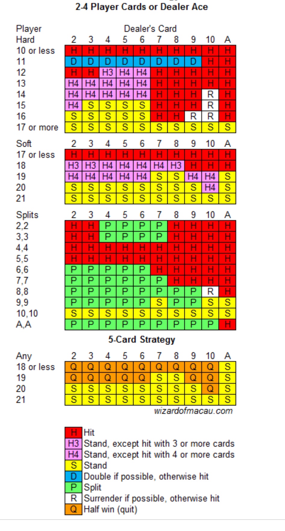 -you can use the black jack matrix at the casino table (they encourage it… probably since the probability is in their favor)
